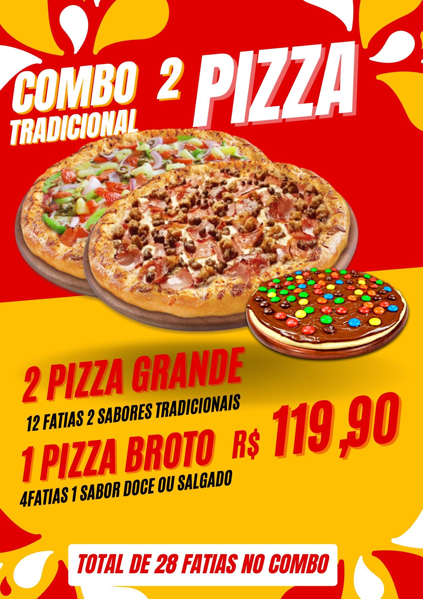 1 pizza Grande (até 3 sabores) + 1 pizza Broto (1 sabor)